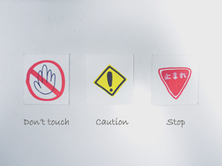 今月の先生の手づくりおもちゃは、警告のサイン!